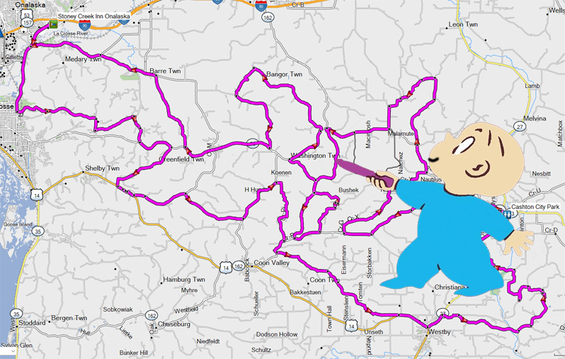 On Friday, we’ll be starting in Hastings, MN and heading to Wisconsin as we take in springtime and wind our way along the magenta line to lunch at the Corral Bar and Grill in Durand, WI. Afterwards, we’ll follow the magenta twists and turns to Stoney Creek Hotel in Onalaska, WI where we’ll spend both Friday and Saturday nights with dinner and fun. Saturday morning’s drive will include lots of squiggly magenta lines as we smile through southwestern Wisconsin. Sunday will cap off the weekend with a more meandering and enjoyable magenta line as we make our way through Minnesota to the rally’s end with lunch on your own at Dan’s Bar and Grill in New Trier, MN.